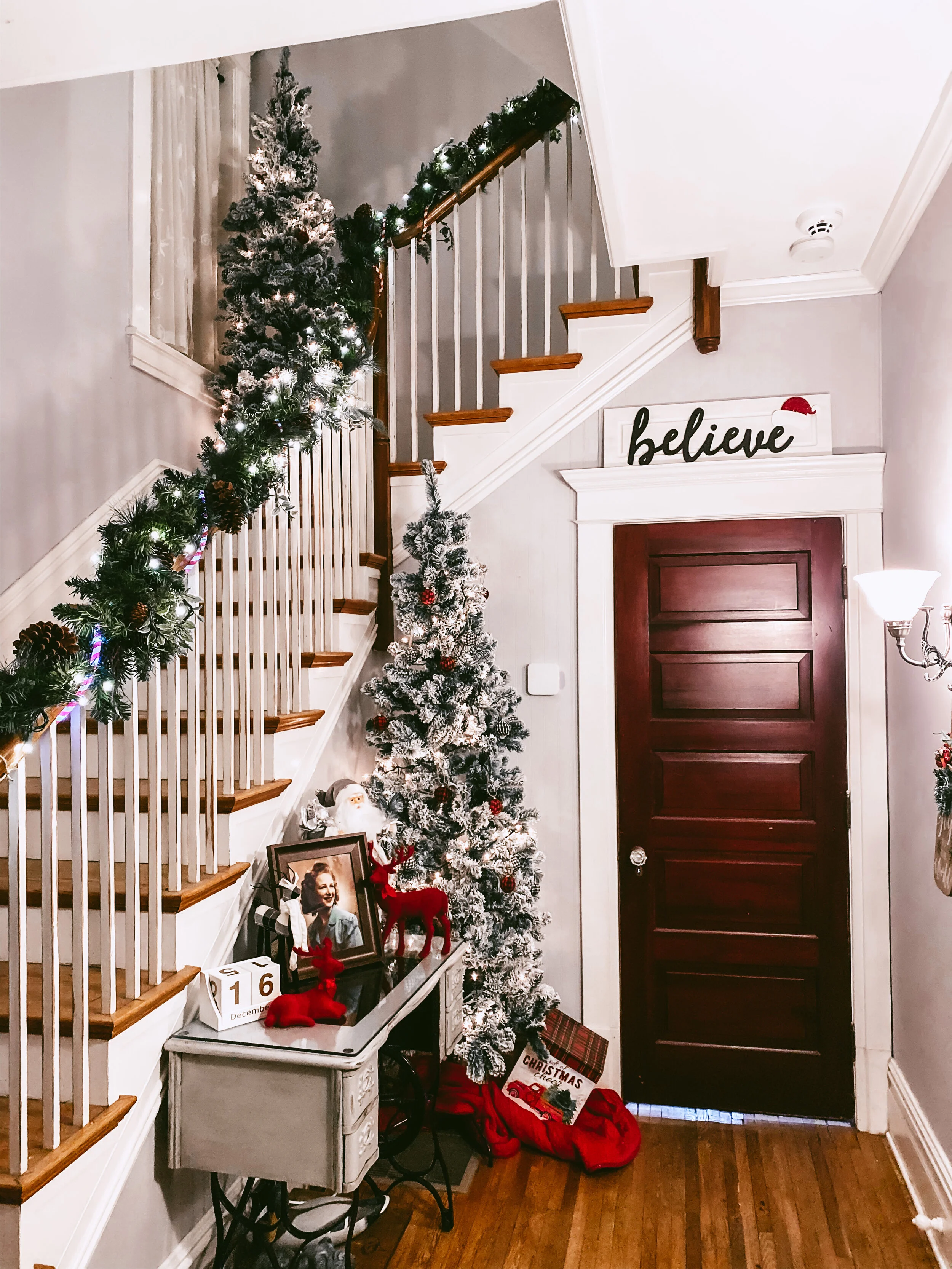 The next year, I expanded more by purchasing a few Christmas themed artworks from Kirklands (my all time favorite décor store) and got a great deal at Belks on two fake trees that sit on the front porch.